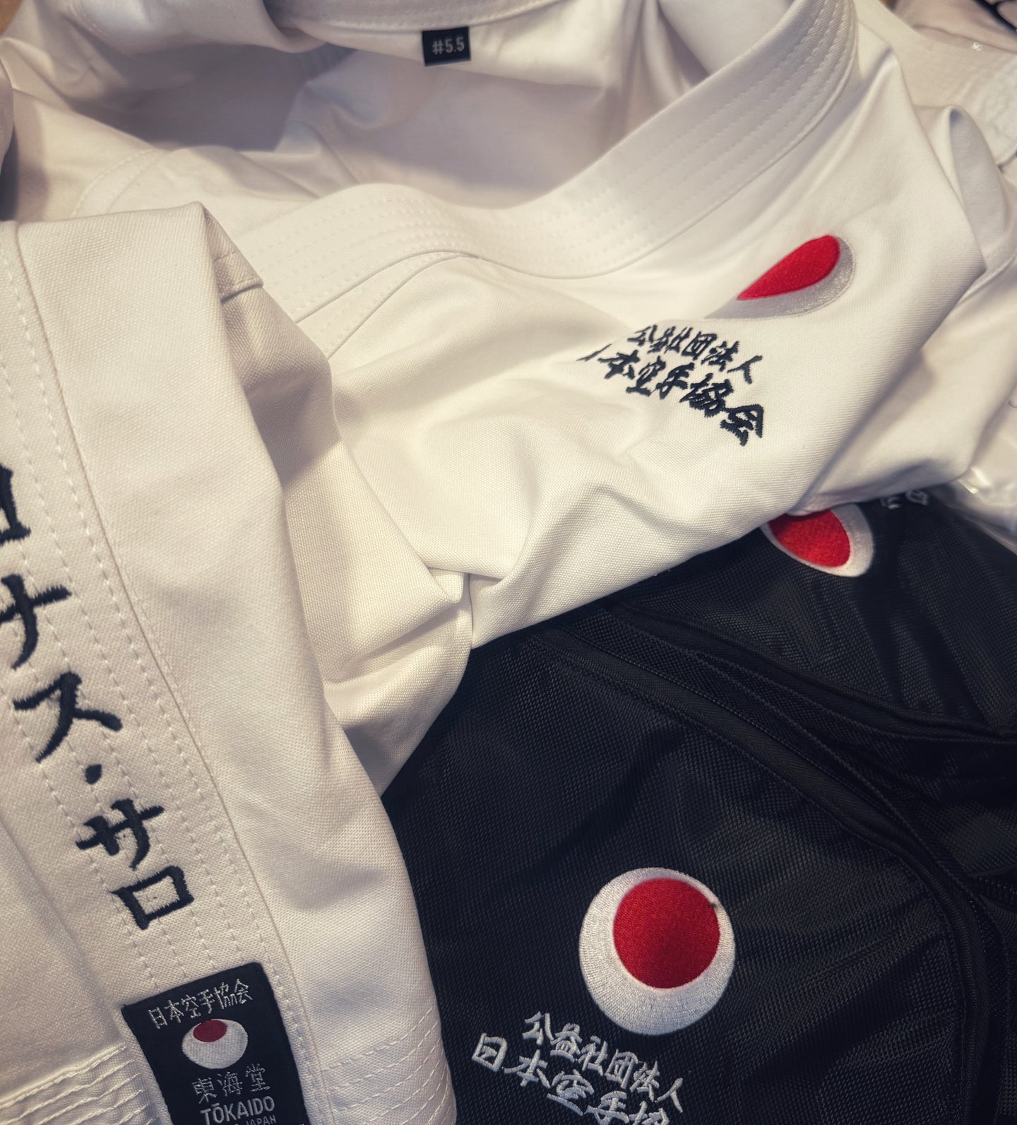 Etikett med den officiella "In-Yo"-logotypen från Japan Karate Association (JKA)
